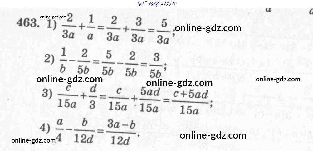 Готовые домашние задания по Алгебре за 7 класс Учебник Алимов, Колягин 2014 - §26. Сложение и вычитание алгебраических дробей Глава 5. Алгебраические дроби 463