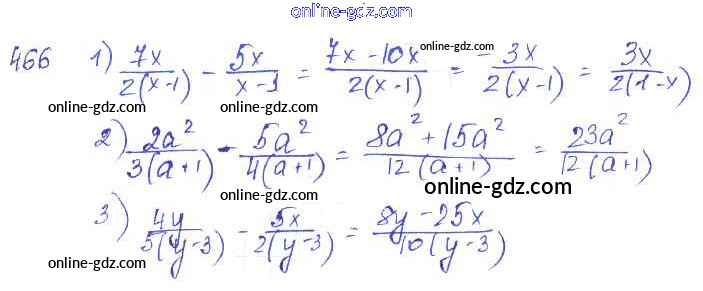 Готовые домашние задания по Алгебре за 7 класс Учебник Алимов, Колягин 2014 - §26. Сложение и вычитание алгебраических дробей Глава 5. Алгебраические дроби 466