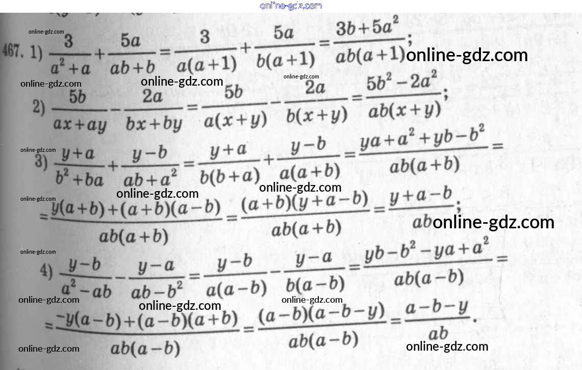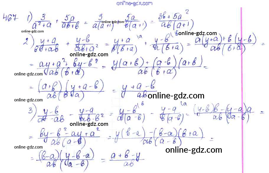 Готовые домашние задания по Алгебре за 7 класс Учебник Алимов, Колягин 2014 - §26. Сложение и вычитание алгебраических дробей Глава 5. Алгебраические дроби 467