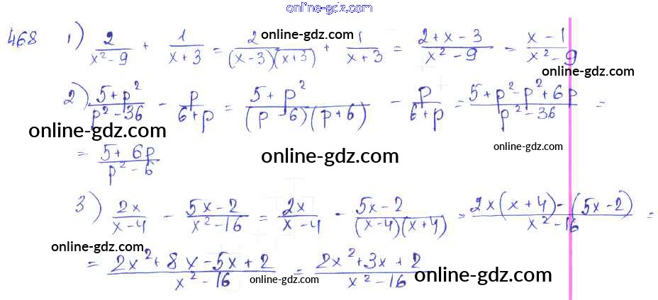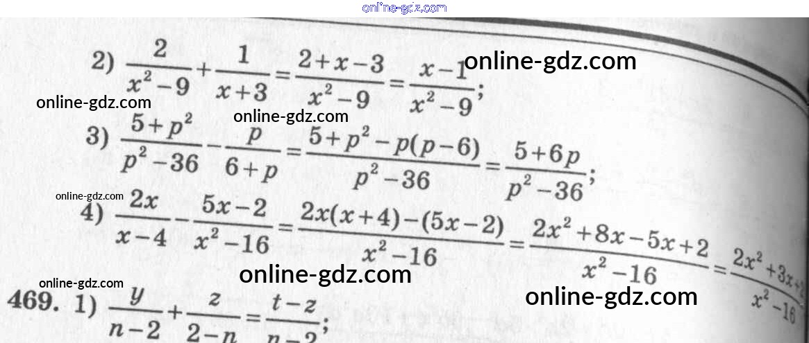 Готовые домашние задания по Алгебре за 7 класс Учебник Алимов, Колягин 2014 - §26. Сложение и вычитание алгебраических дробей Глава 5. Алгебраические дроби 468