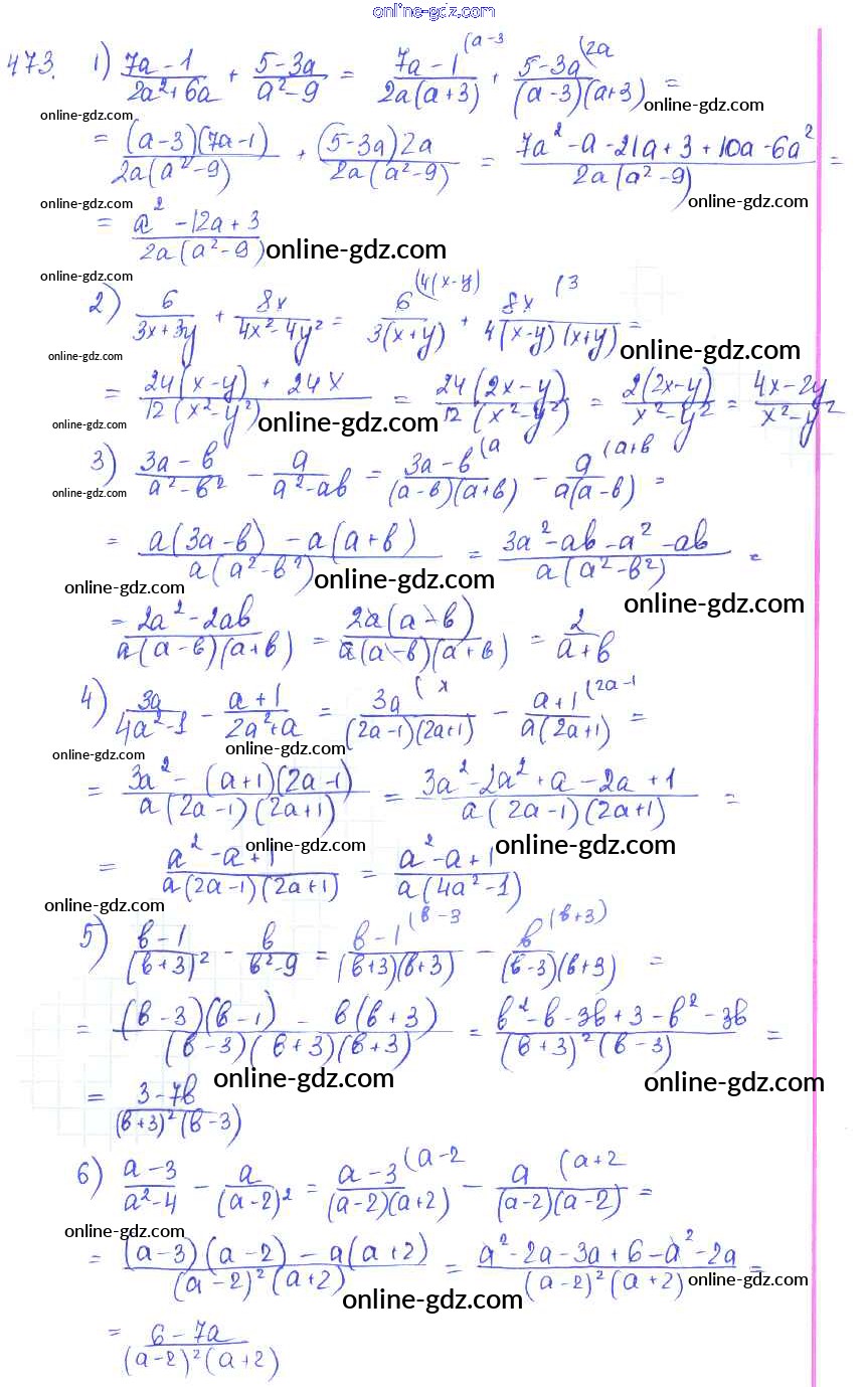 Готовые домашние задания по Алгебре за 7 класс Учебник Алимов, Колягин 2014 - §26. Сложение и вычитание алгебраических дробей Глава 5. Алгебраические дроби 473