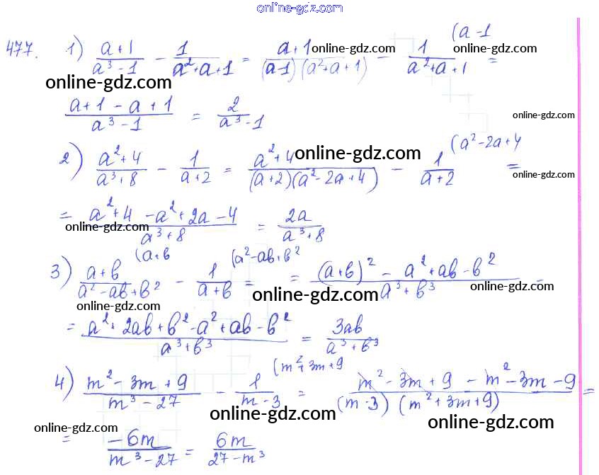 Готовые домашние задания по Алгебре за 7 класс Учебник Алимов, Колягин 2014 - §26. Сложение и вычитание алгебраических дробей Глава 5. Алгебраические дроби 477