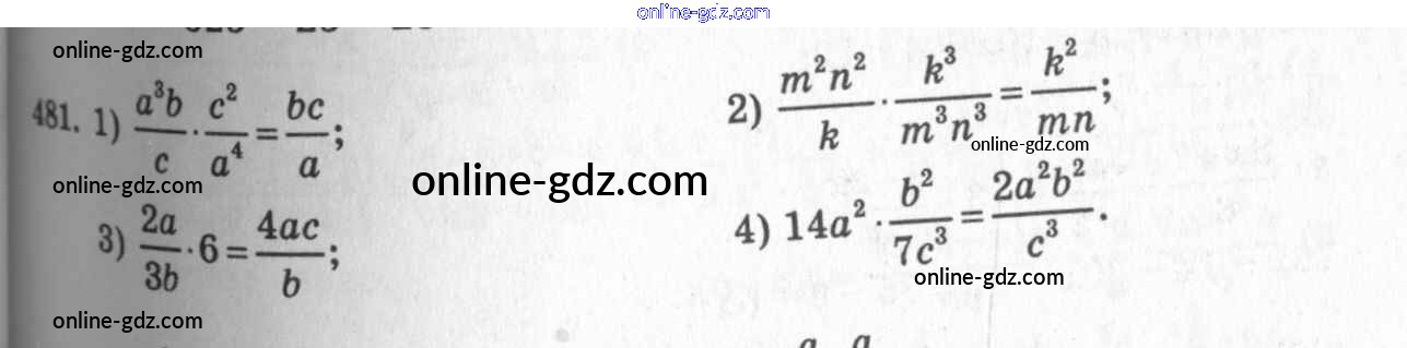 Готовые домашние задания по Алгебре за 7 класс Учебник Алимов, Колягин 2014 - §27. Умножение и деление алгебраических дробей Глава 5. Алгебраические дроби 481