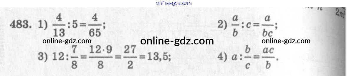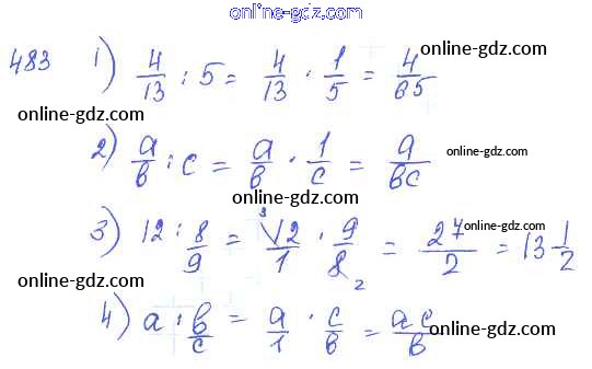 Готовые домашние задания по Алгебре за 7 класс Учебник Алимов, Колягин 2014 - §27. Умножение и деление алгебраических дробей Глава 5. Алгебраические дроби 483