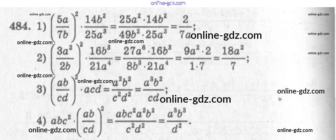 Готовые домашние задания по Алгебре за 7 класс Учебник Алимов, Колягин 2014 - §27. Умножение и деление алгебраических дробей Глава 5. Алгебраические дроби 484