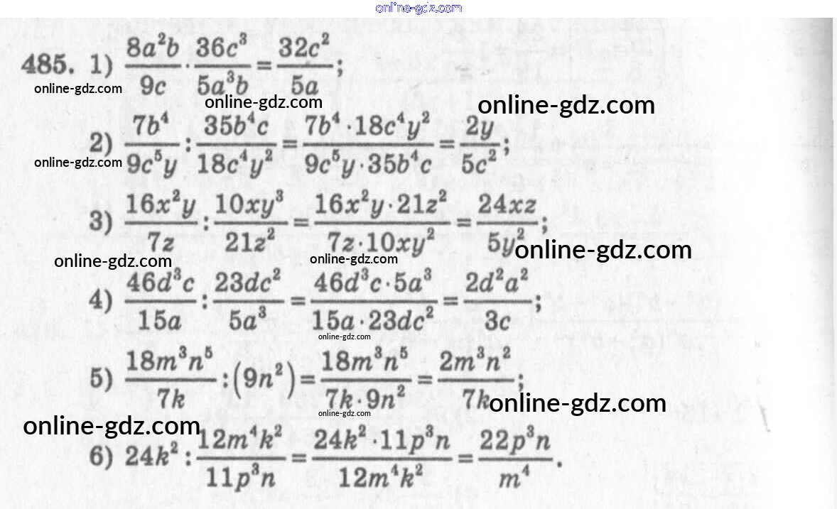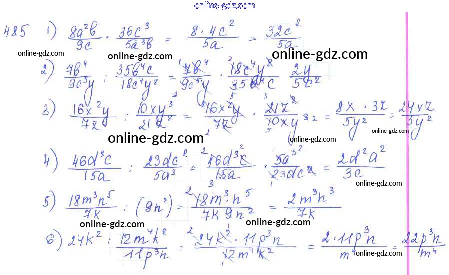 Готовые домашние задания по Алгебре за 7 класс Учебник Алимов, Колягин 2014 - §27. Умножение и деление алгебраических дробей Глава 5. Алгебраические дроби 485