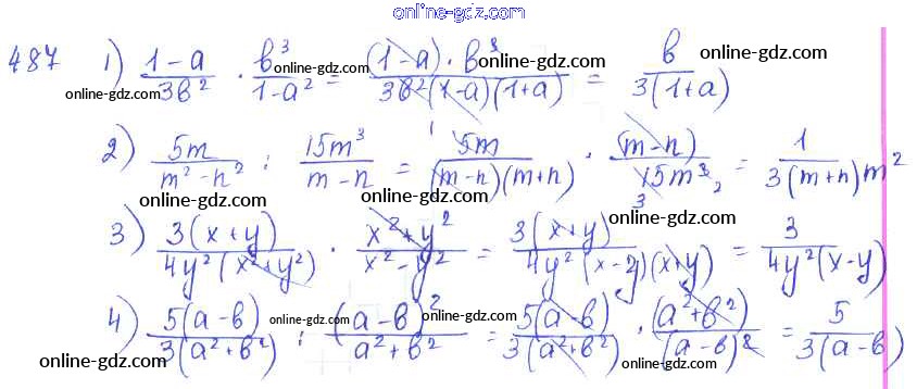 Готовые домашние задания по Алгебре за 7 класс Учебник Алимов, Колягин 2014 - §27. Умножение и деление алгебраических дробей Глава 5. Алгебраические дроби 487