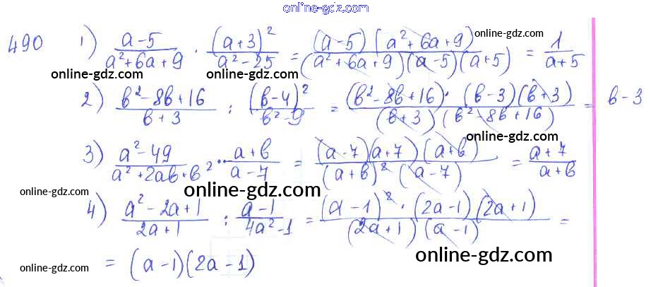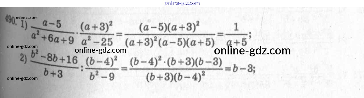 Готовые домашние задания по Алгебре за 7 класс Учебник Алимов, Колягин 2014 - §27. Умножение и деление алгебраических дробей Глава 5. Алгебраические дроби 490