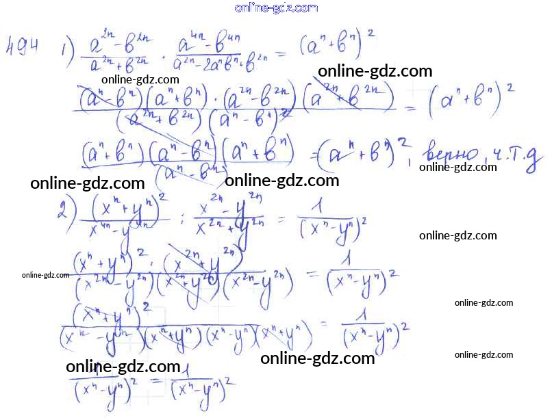 Готовые домашние задания по Алгебре за 7 класс Учебник Алимов, Колягин 2014 - §27. Умножение и деление алгебраических дробей Глава 5. Алгебраические дроби 494