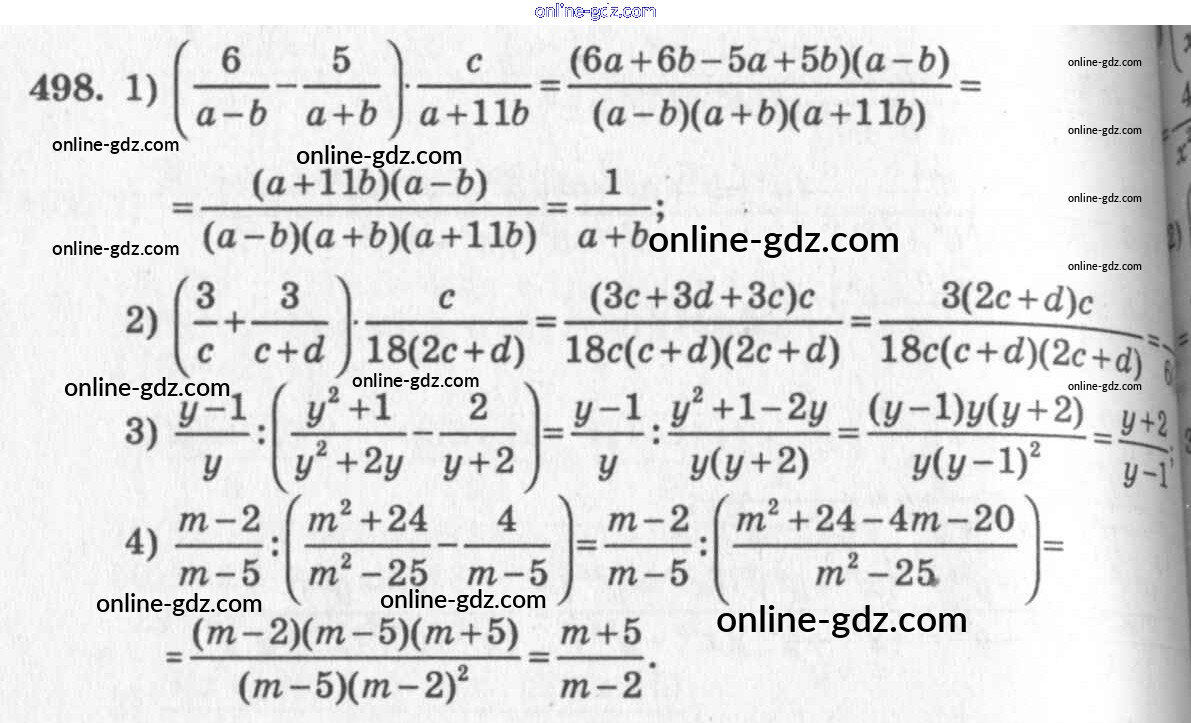 Готовые домашние задания по Алгебре за 7 класс Учебник Алимов, Колягин 2014 - §28. Совместные действия над алгебраическими дробями Глава 5. Алгебраические дроби 498