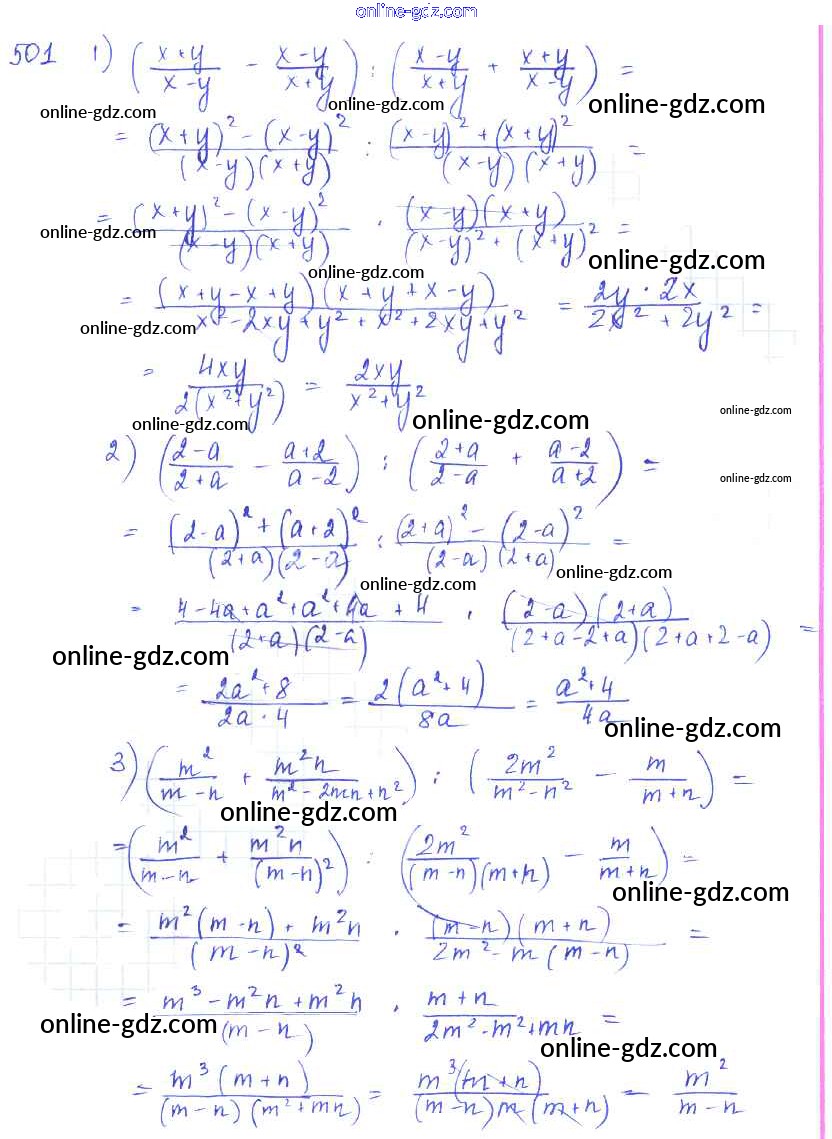 Готовые домашние задания по Алгебре за 7 класс Учебник Алимов, Колягин 2014 - §28. Совместные действия над алгебраическими дробями Глава 5. Алгебраические дроби 501