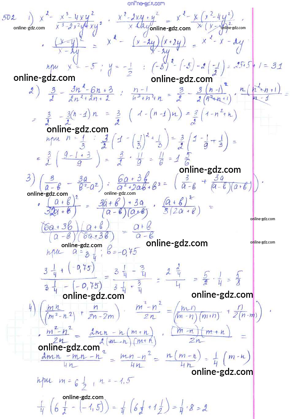 Готовые домашние задания по Алгебре за 7 класс Учебник Алимов, Колягин 2014 - §28. Совместные действия над алгебраическими дробями Глава 5. Алгебраические дроби 502