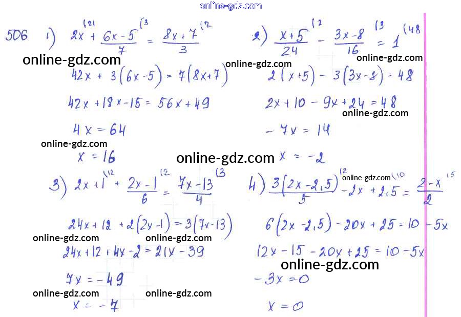 Готовые домашние задания по Алгебре за 7 класс Учебник Алимов, Колягин 2014 - Упражнения к главе 5 Глава 5. Алгебраические дроби 506