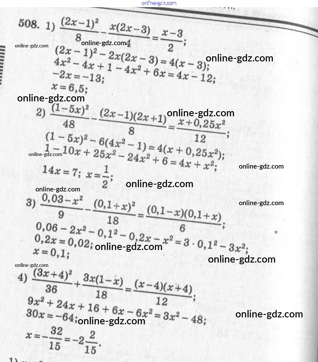 Готовые домашние задания по Алгебре за 7 класс Учебник Алимов, Колягин 2014 - Упражнения к главе 5 Глава 5. Алгебраические дроби 508