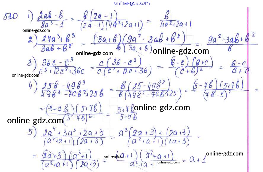 Готовые домашние задания по Алгебре за 7 класс Учебник Алимов, Колягин 2014 - Упражнения к главе 5 Глава 5. Алгебраические дроби 520