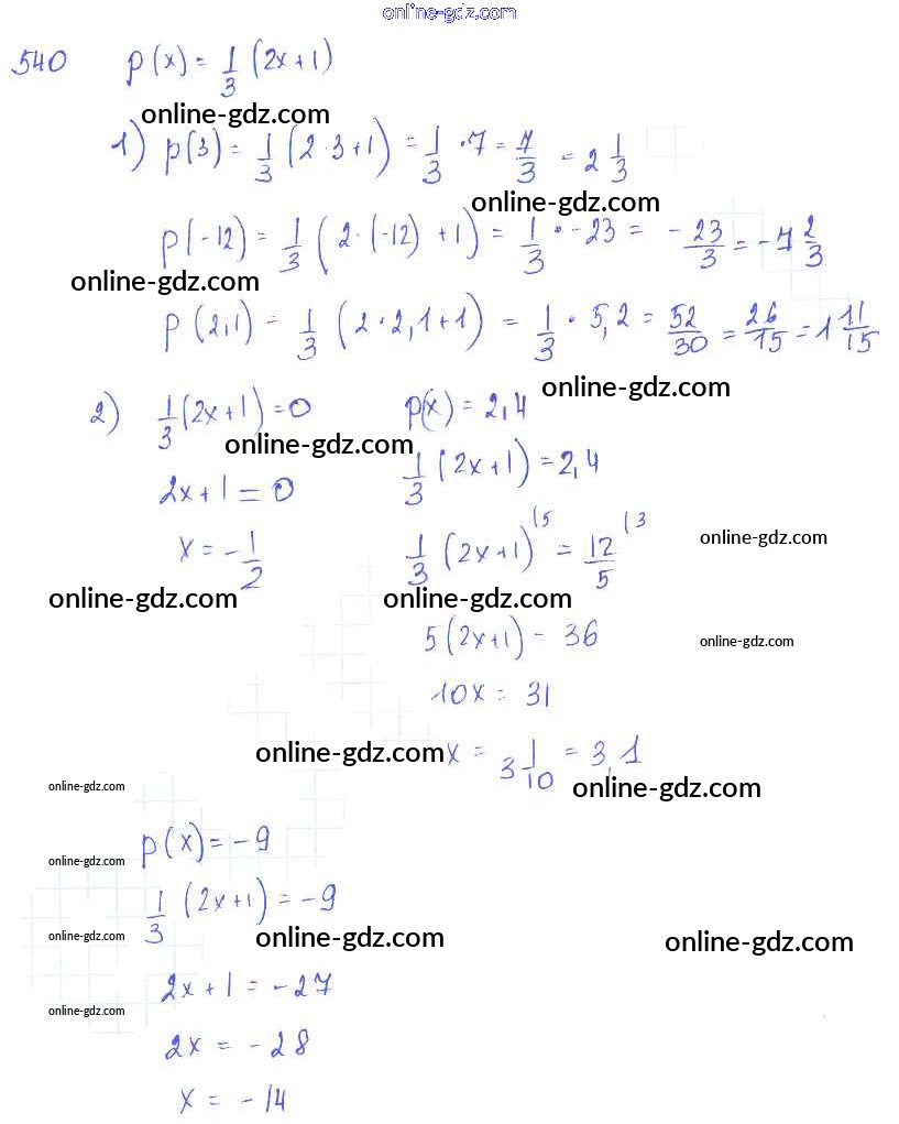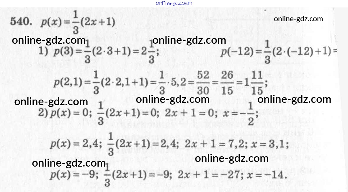 Готовые домашние задания по Алгебре за 7 класс Учебник Алимов, Колягин 2014 - §30. Функция Глава 6. Линейная функция и ее график 540