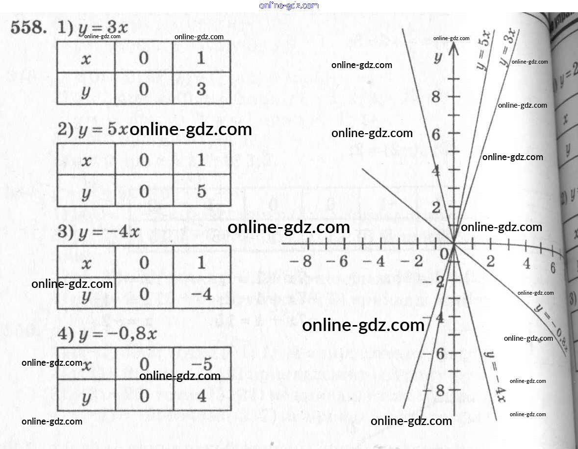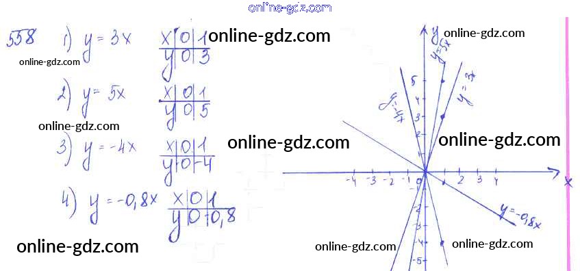 Готовые домашние задания по Алгебре за 7 класс Учебник Алимов, Колягин 2014 - §31. Функция y=kx и ее график Глава 6. Линейная функция и ее график 558