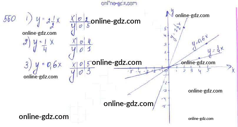 Готовые домашние задания по Алгебре за 7 класс Учебник Алимов, Колягин 2014 - §31. Функция y=kx и ее график Глава 6. Линейная функция и ее график 560