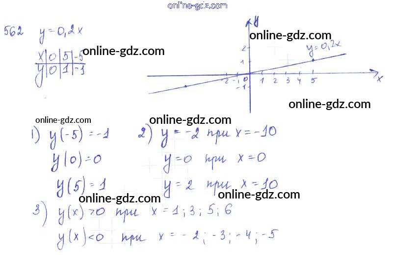 Готовые домашние задания по Алгебре за 7 класс Учебник Алимов, Колягин 2014 - §31. Функция y=kx и ее график Глава 6. Линейная функция и ее график 562