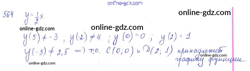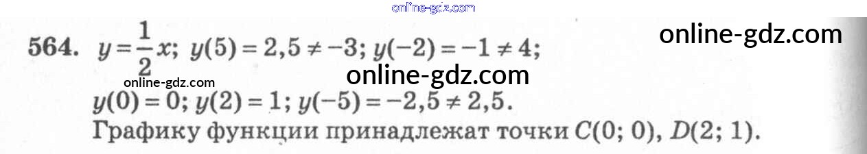 Готовые домашние задания по Алгебре за 7 класс Учебник Алимов, Колягин 2014 - §31. Функция y=kx и ее график Глава 6. Линейная функция и ее график 564