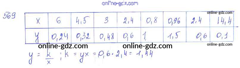 Готовые домашние задания по Алгебре за 7 класс Учебник Алимов, Колягин 2014 - §31. Функция y=kx и ее график Глава 6. Линейная функция и ее график 569