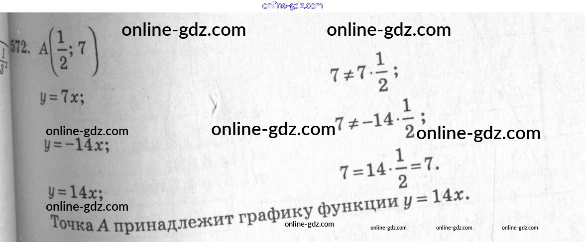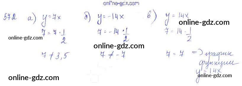 Готовые домашние задания по Алгебре за 7 класс Учебник Алимов, Колягин 2014 - §31. Функция y=kx и ее график Глава 6. Линейная функция и ее график 572