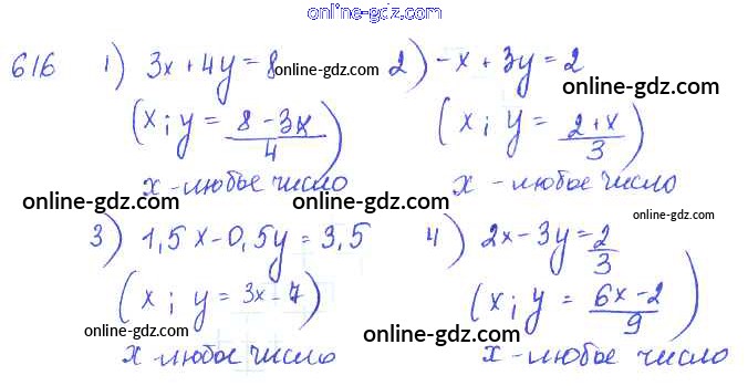 Готовые домашние задания по Алгебре за 7 класс Учебник Алимов, Колягин 2014 - §33. Уравнения первой степени с двумя неизвестными. Системы уравнений Глава 7. Системы двух уравнений с двумя неизвестными 616