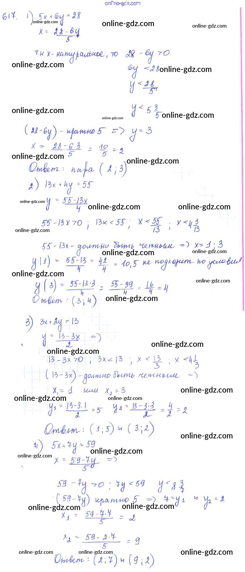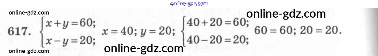 Готовые домашние задания по Алгебре за 7 класс Учебник Алимов, Колягин 2014 - §33. Уравнения первой степени с двумя неизвестными. Системы уравнений Глава 7. Системы двух уравнений с двумя неизвестными 617