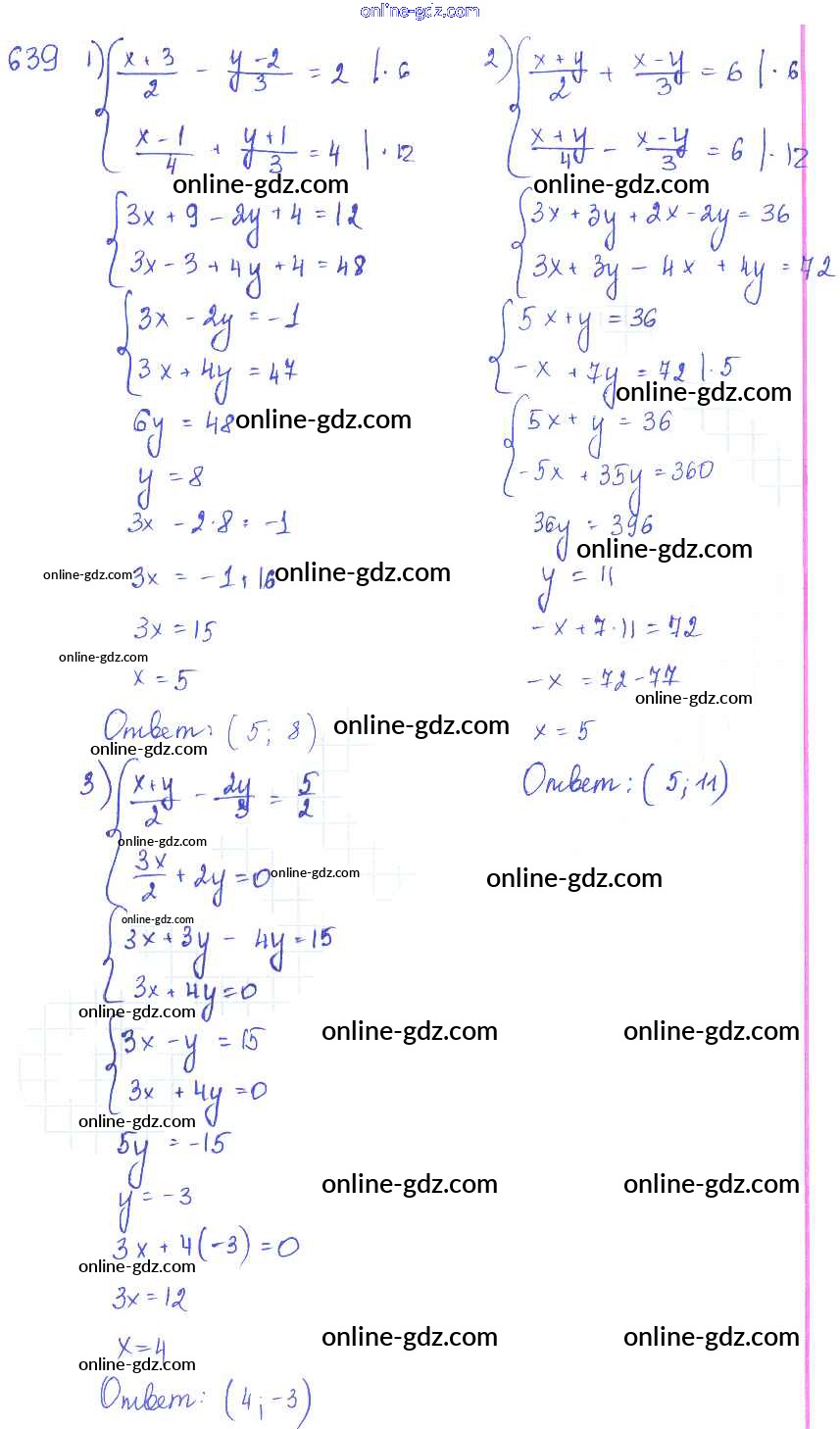 Готовые домашние задания по Алгебре за 7 класс Учебник Алимов, Колягин 2014 - §35. Способ сложения Глава 7. Системы двух уравнений с двумя неизвестными 639