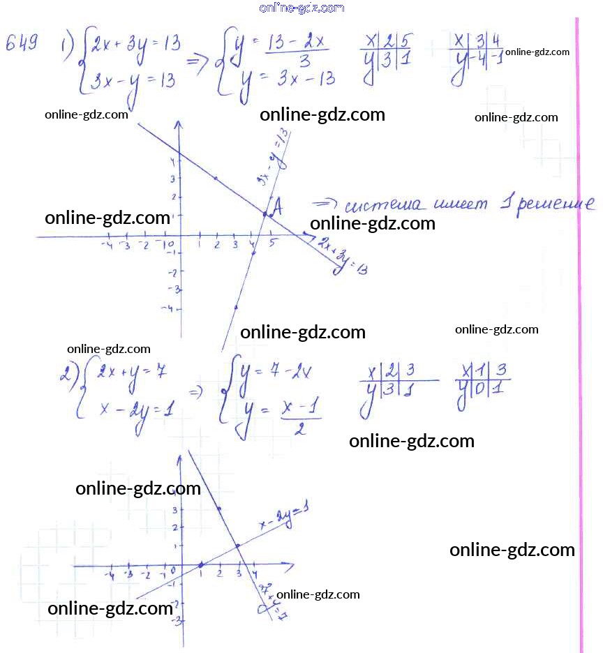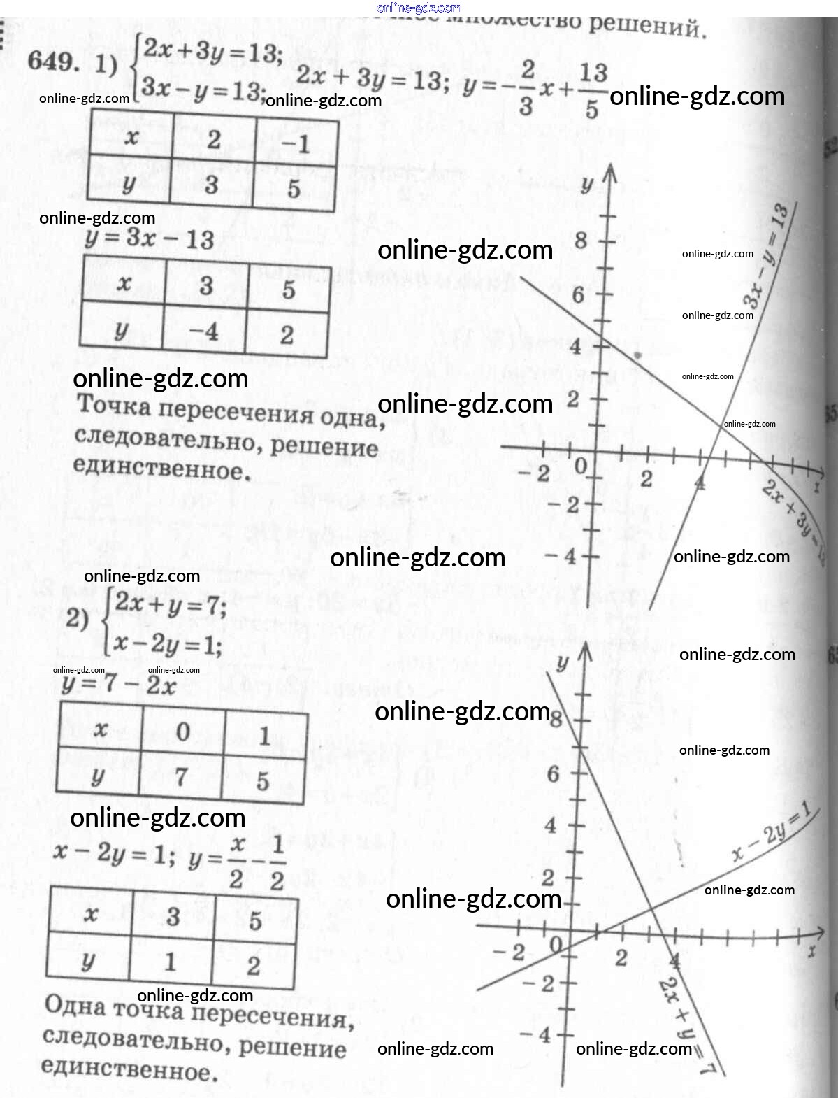 Готовые домашние задания по Алгебре за 7 класс Учебник Алимов, Колягин 2014 - §36. Графический способ решения систем уравнений Глава 7. Системы двух уравнений с двумя неизвестными 649