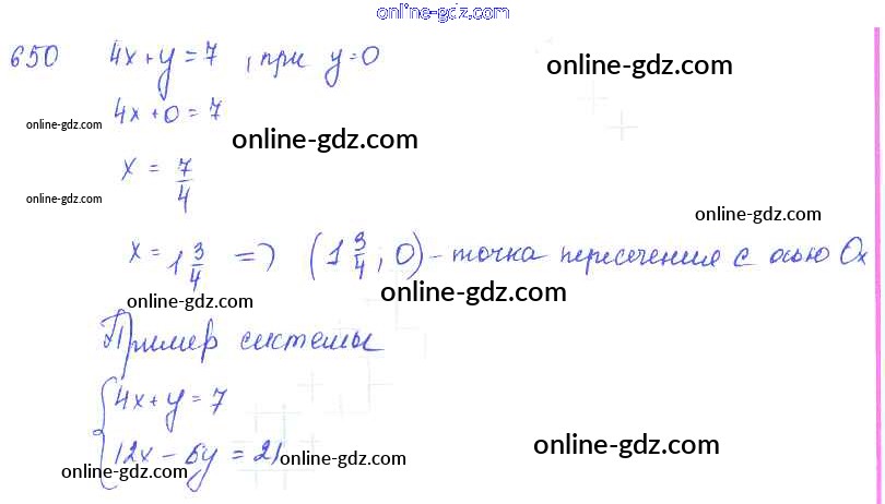 Готовые домашние задания по Алгебре за 7 класс Учебник Алимов, Колягин 2014 - §36. Графический способ решения систем уравнений Глава 7. Системы двух уравнений с двумя неизвестными 650