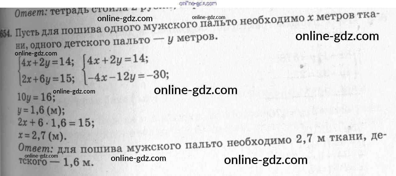 Готовые домашние задания по Алгебре за 7 класс Учебник Алимов, Колягин 2014 - §37. Решение задач с помощью систем уравнений Глава 7. Системы двух уравнений с двумя неизвестными 654