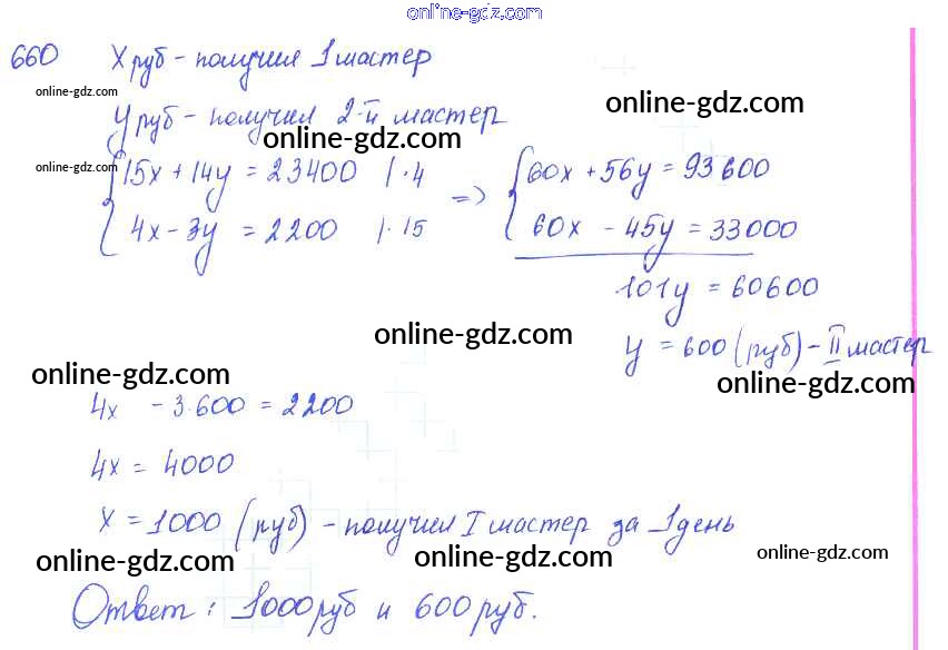 Готовые домашние задания по Алгебре за 7 класс Учебник Алимов, Колягин 2014 - §37. Решение задач с помощью систем уравнений Глава 7. Системы двух уравнений с двумя неизвестными 660