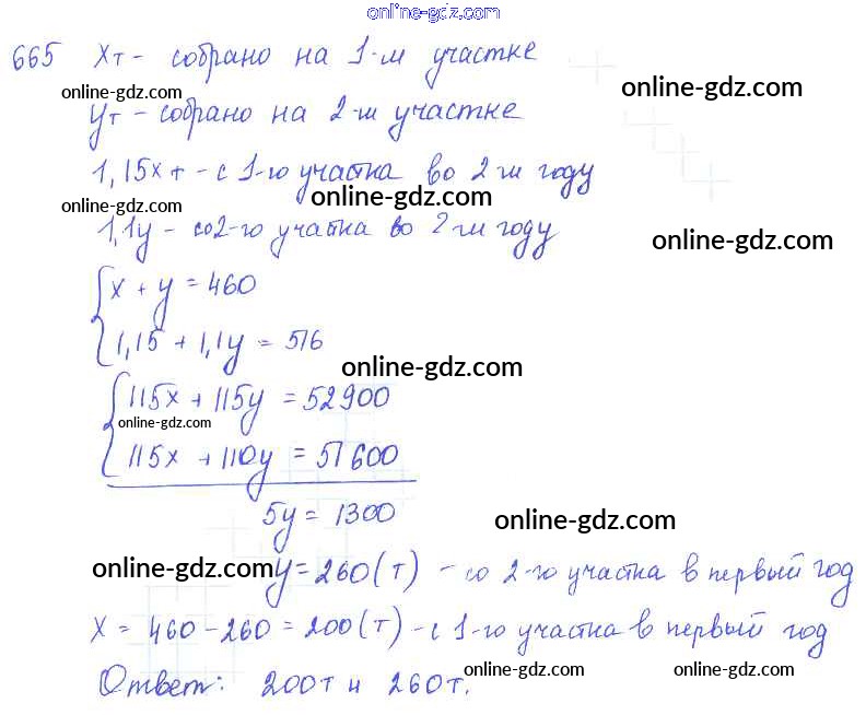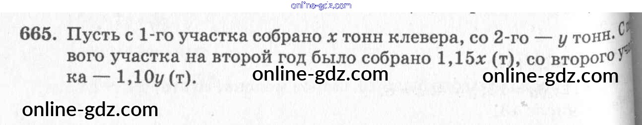 Готовые домашние задания по Алгебре за 7 класс Учебник Алимов, Колягин 2014 - §37. Решение задач с помощью систем уравнений Глава 7. Системы двух уравнений с двумя неизвестными 665