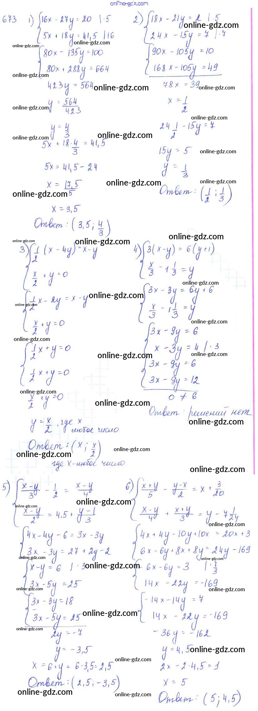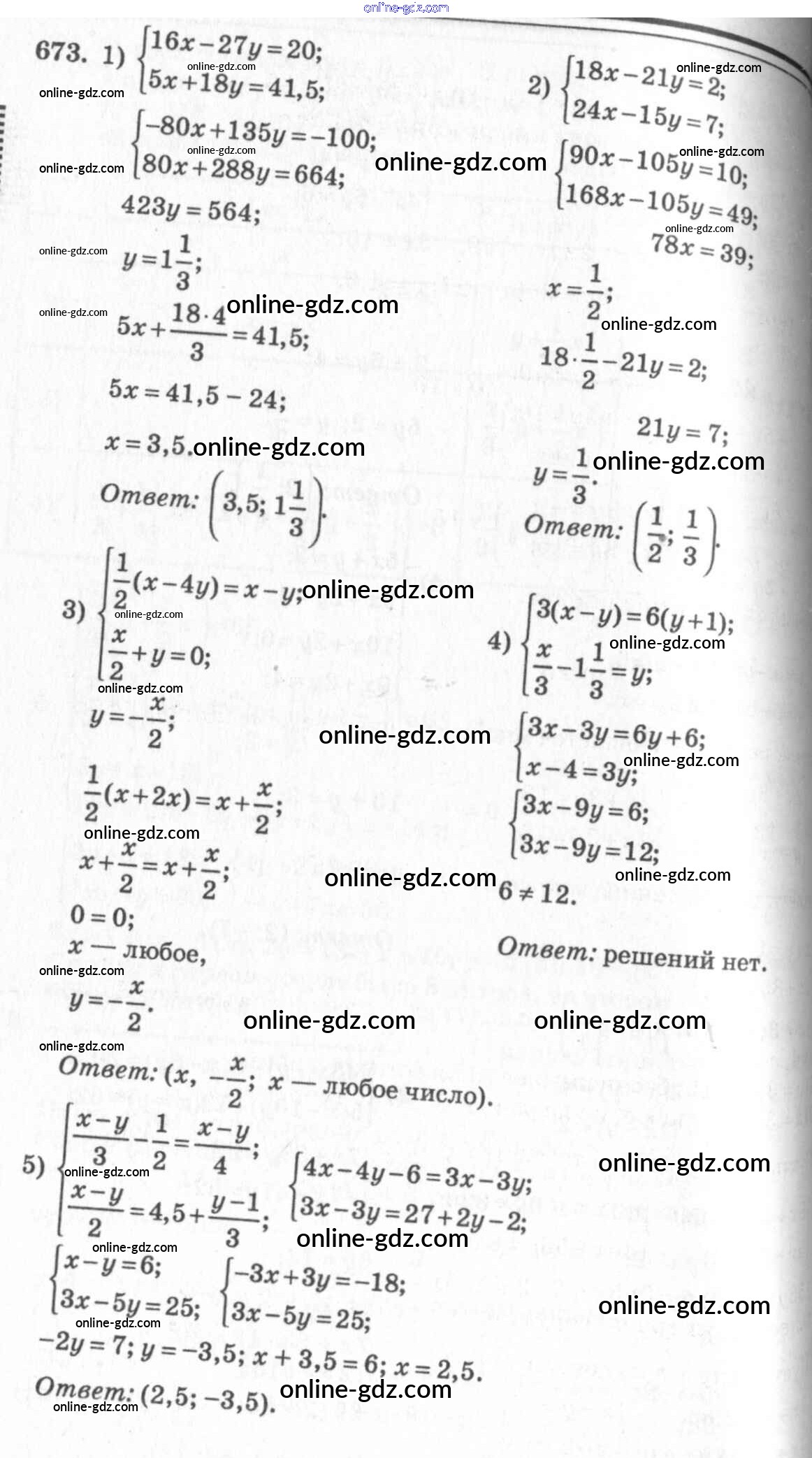 Готовые домашние задания по Алгебре за 7 класс Учебник Алимов, Колягин 2014 - Упражнения к главе 7 Глава 7. Системы двух уравнений с двумя неизвестными 673