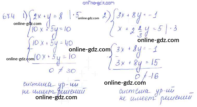 Готовые домашние задания по Алгебре за 7 класс Учебник Алимов, Колягин 2014 - Упражнения к главе 7 Глава 7. Системы двух уравнений с двумя неизвестными 674