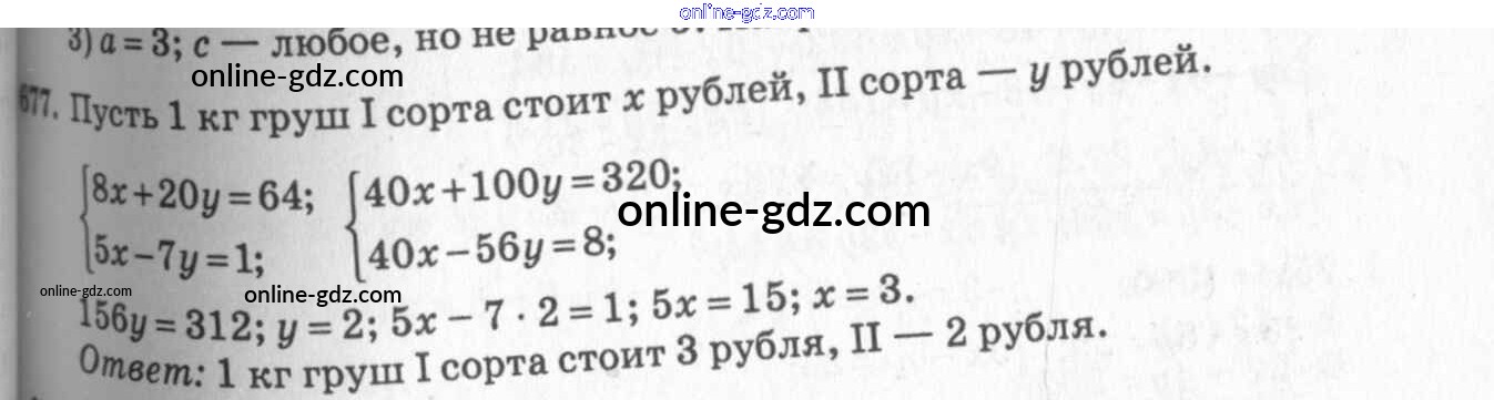 Готовые домашние задания по Алгебре за 7 класс Учебник Алимов, Колягин 2014 - Упражнения к главе 7 Глава 7. Системы двух уравнений с двумя неизвестными 677