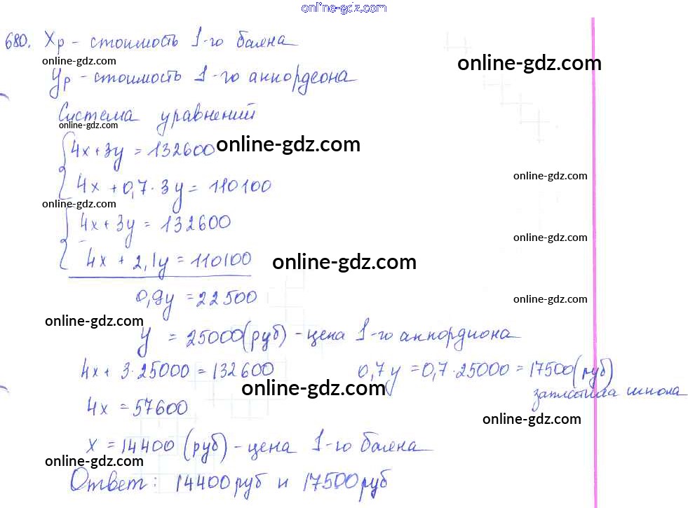 Готовые домашние задания по Алгебре за 7 класс Учебник Алимов, Колягин 2014 - Упражнения к главе 7 Глава 7. Системы двух уравнений с двумя неизвестными 680