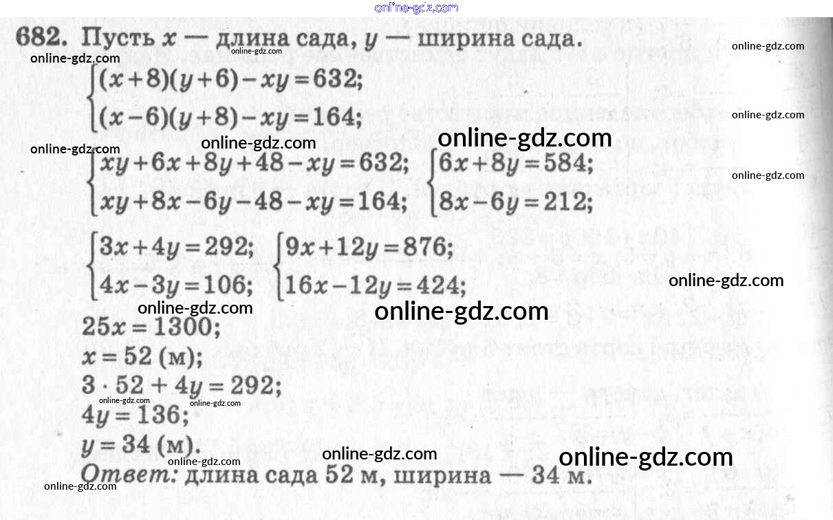 Готовые домашние задания по Алгебре за 7 класс Учебник Алимов, Колягин 2014 - Упражнения к главе 7 Глава 7. Системы двух уравнений с двумя неизвестными 682