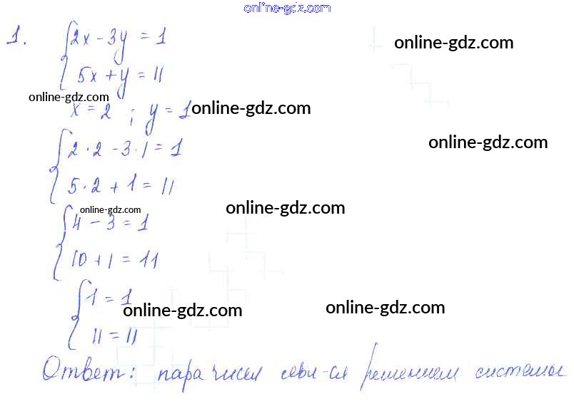 Готовые домашние задания по Алгебре за 7 класс Учебник Алимов, Колягин 2014 - Проверь себя Глава 7. Системы двух уравнений с двумя неизвестными 1