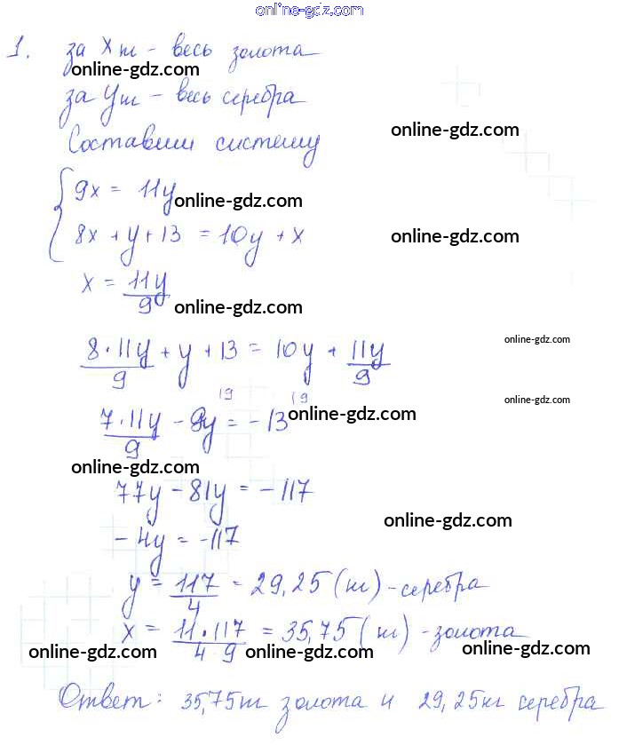 Готовые домашние задания по Алгебре за 7 класс Учебник Алимов, Колягин 2014 - Старинные задачи Глава 7. Системы двух уравнений с двумя неизвестными 1