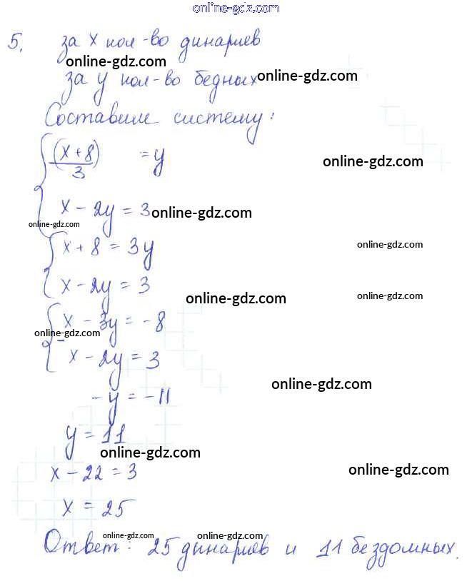 Готовые домашние задания по Алгебре за 7 класс Учебник Алимов, Колягин 2014 - Старинные задачи Глава 7. Системы двух уравнений с двумя неизвестными 5