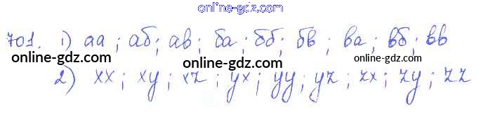 Готовые домашние задания по Алгебре за 7 класс Учебник Алимов, Колягин 2014 - §39. Таблица вариантов и правило произведения Глава 8. Элементы комбинаторики 701