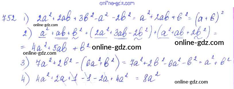 Готовые домашние задания по Алгебре за 7 класс Учебник Алимов, Колягин 2014 - Упражнения для повторения курса алгебры 7 класса 752