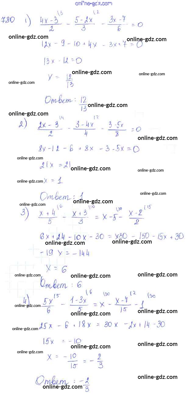 Готовые домашние задания по Алгебре за 7 класс Учебник Алимов, Колягин 2014 - Упражнения для повторения курса алгебры 7 класса 780