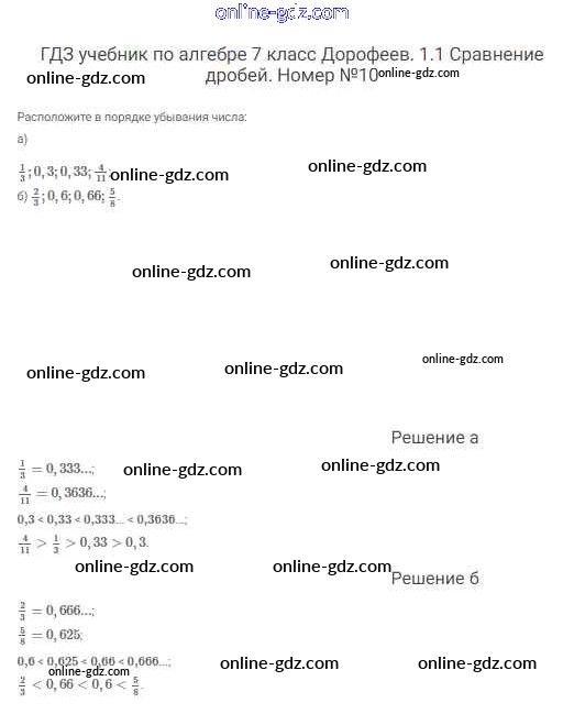 Готовые домашние задания по Алгебре за 7 класс Учебник Дорофеев, Суворова Академический школьный учебник 2020 - Упражнения 10