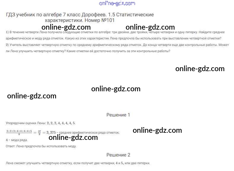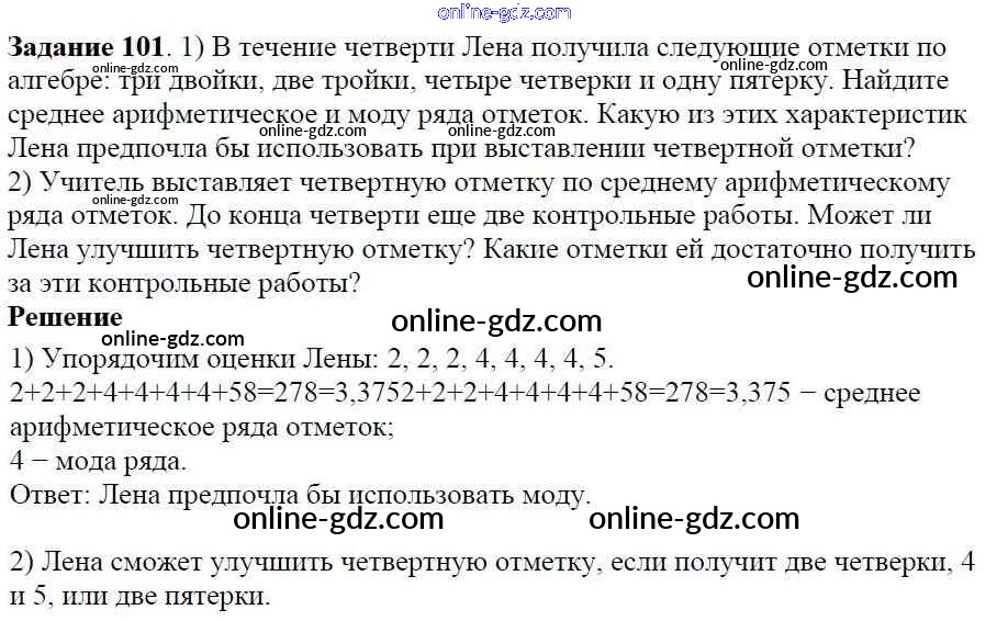 Готовые домашние задания по Алгебре за 7 класс Учебник Дорофеев, Суворова Академический школьный учебник 2020 - Упражнения 101