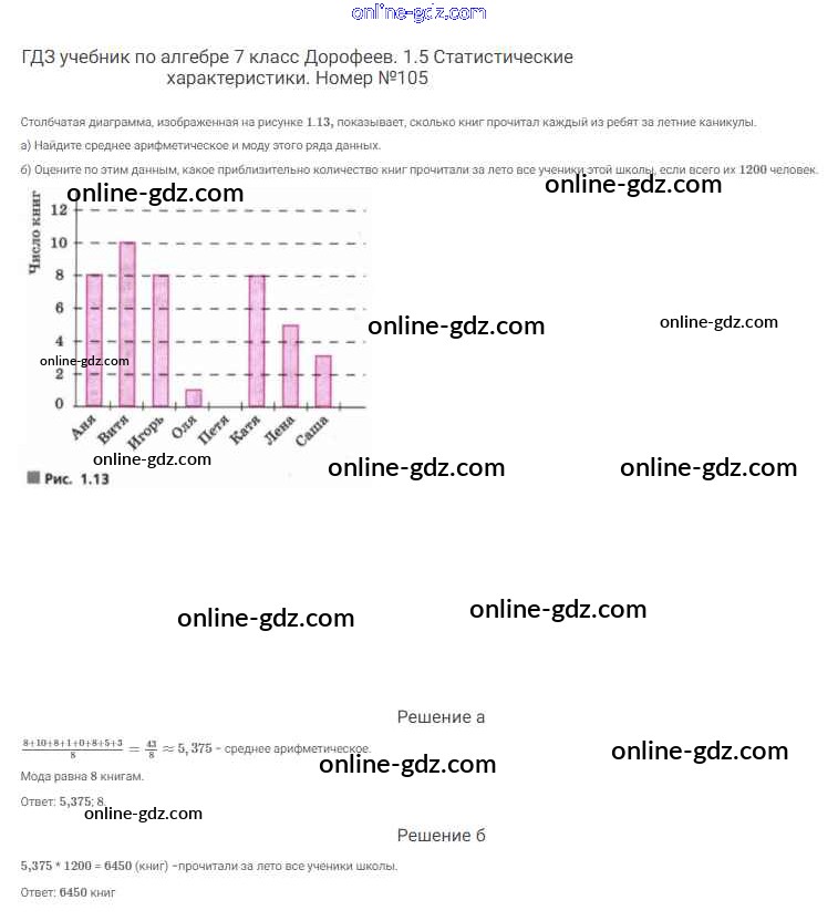 Готовые домашние задания по Алгебре за 7 класс Учебник Дорофеев, Суворова Академический школьный учебник 2020 - Упражнения 105