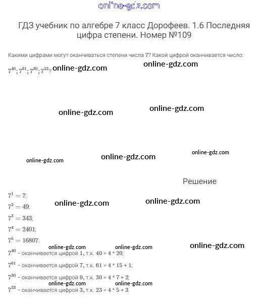 Готовые домашние задания по Алгебре за 7 класс Учебник Дорофеев, Суворова Академический школьный учебник 2020 - Упражнения 109