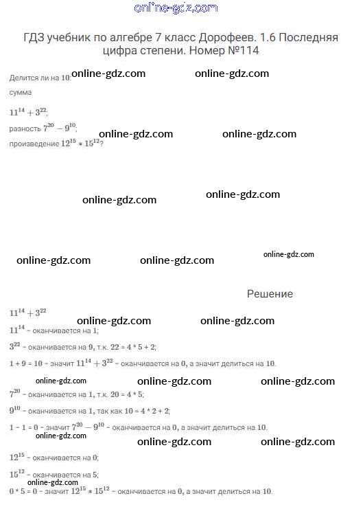 Готовые домашние задания по Алгебре за 7 класс Учебник Дорофеев, Суворова Академический школьный учебник 2020 - Упражнения 114